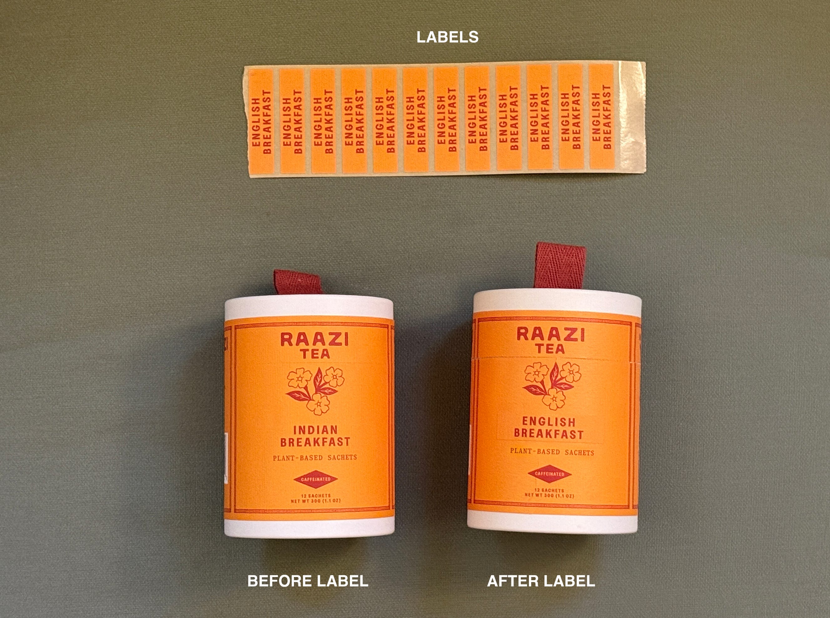 One of the joys of being a small business with few employees (just one, to be exact) is that you can make decisions quickly. So I fired up InDesign, changed the designs, and ordered a few thousand English Breakfast labels for my next production run.